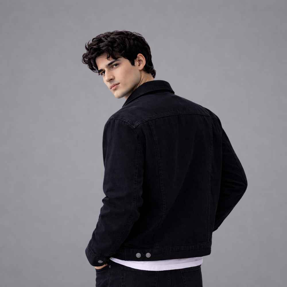 "Sharp, versatile, and built to last the Classic Black Denim Jacket is a must-have staple for every modern wardrobe. Designed with a clean silhouette and structured fit, this jacket delivers a bold yet effortless look that works in every season. The premium-quality denim fabric offers durability with a comfortable feel, making it perfect for everyday wear. Its minimal black finish adds a timeless edge, allowing you to style it effortlessly over t-shirts, hoodies, or sweaters. Finished with strong metal buttons, functional pockets, and precise stitching, this jacket blends classic denim style with a modern streetwear attitude. Whether you’re heading out casually or layering for a night look, this jacket elevates your outfit without trying too hard."