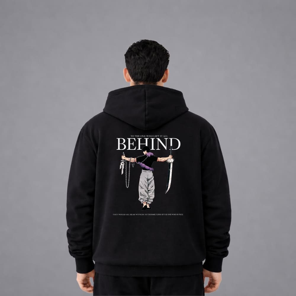 "Designed for those who believe in strength, loyalty, and quiet confidence, the BEHIND Premium Fleece Hoodie is more than just a layer it’s a statement. Made from 300+ GSM heavyweight fleece, this hoodie offers superior warmth, softness, and durability, making it perfect for everyday wear and colder seasons. The striking back graphic symbolizes standing strong behind what matters most, giving the hoodie a bold yet meaningful presence. With a premium quality fabric, smooth inner fleece lining, and a comfortable relaxed fit, it delivers both style and long-lasting comfort. Whether you’re stepping out or staying in, this hoodie keeps you warm while elevating your streetwear look effortlessly."