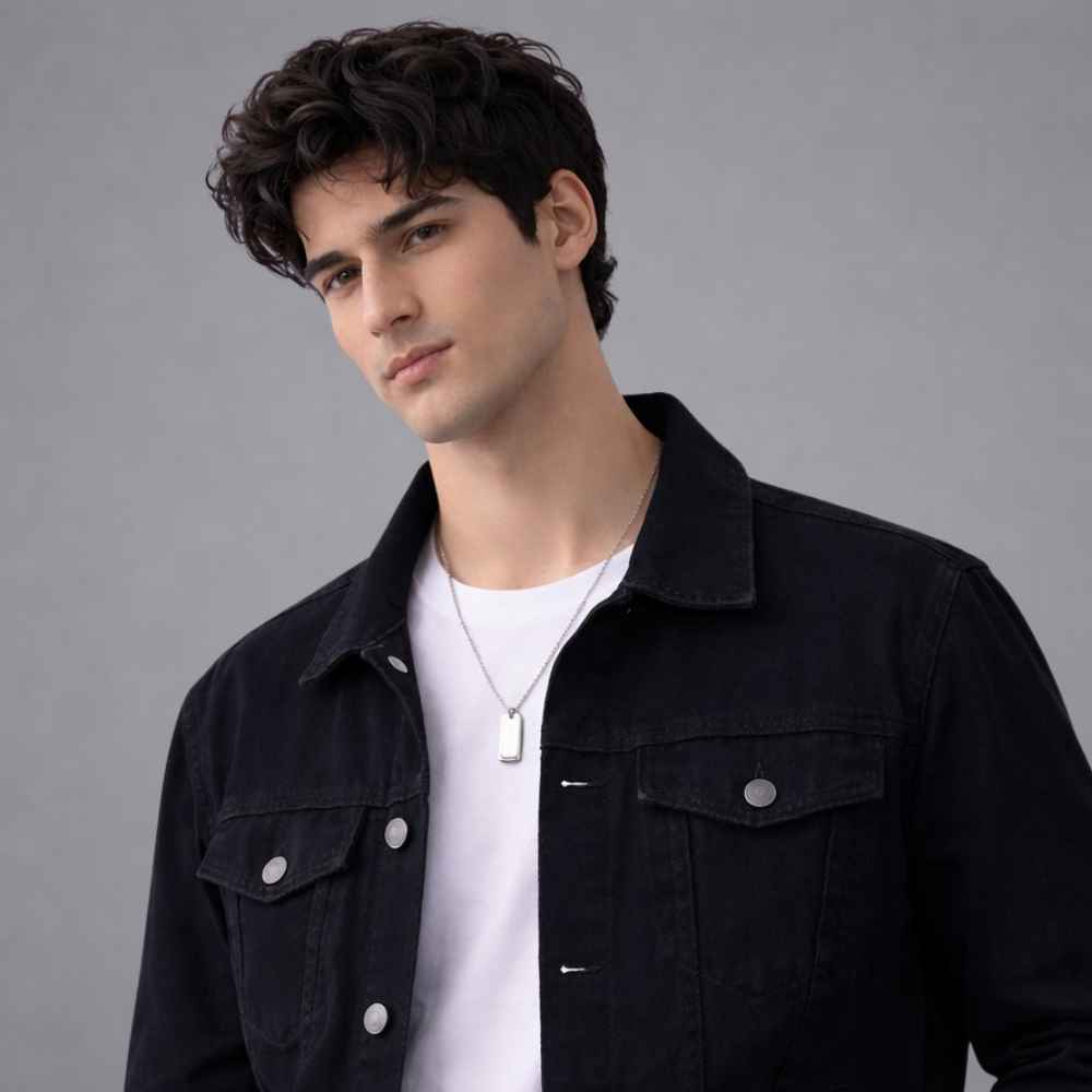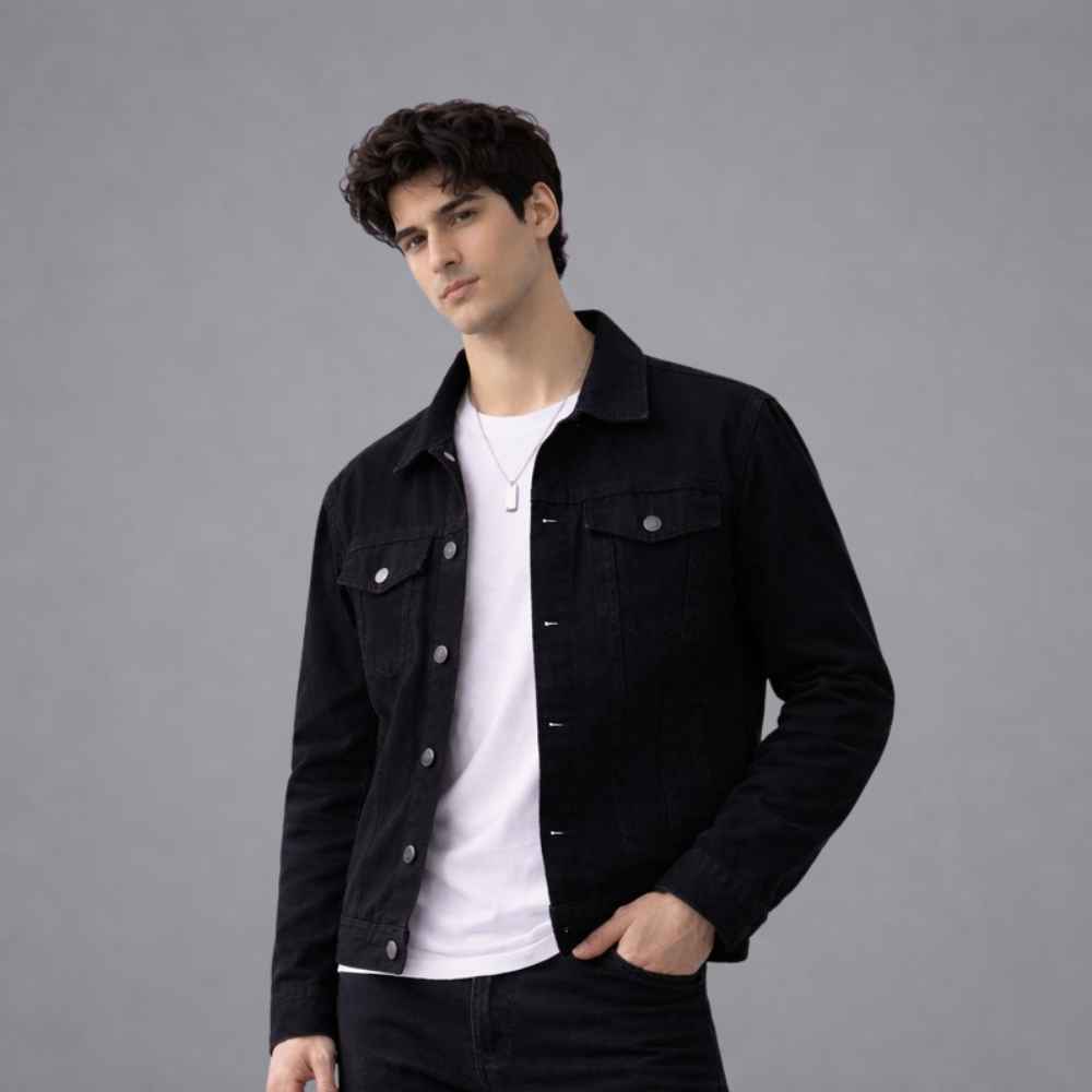 "Sharp, versatile, and built to last the Classic Black Denim Jacket is a must-have staple for every modern wardrobe. Designed with a clean silhouette and structured fit, this jacket delivers a bold yet effortless look that works in every season. The premium-quality denim fabric offers durability with a comfortable feel, making it perfect for everyday wear. Its minimal black finish adds a timeless edge, allowing you to style it effortlessly over t-shirts, hoodies, or sweaters. Finished with strong metal buttons, functional pockets, and precise stitching, this jacket blends classic denim style with a modern streetwear attitude. Whether you’re heading out casually or layering for a night look, this jacket elevates your outfit without trying too hard."